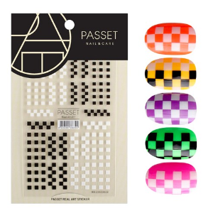 Наклейка для ногтей Passet Real Art, черно-белая шахматная..., 1шт