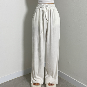 • Широкие спортивные брюки из лёгкой ткани с высокой посадкой и плиссировкой