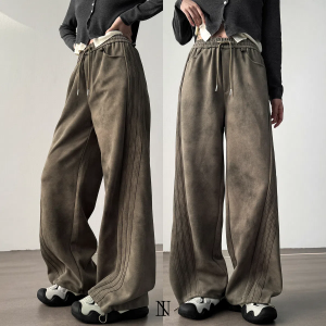 Широкие спортивные брюки с косыми полосками, эффектом стирки и шнурком на талии