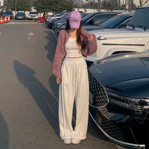Высокие трикотажные брюки с эффектом "больше бёдер" и эластичным поясом