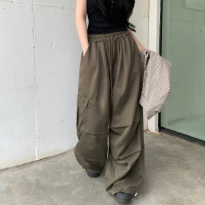 Двухщипковые карго-брюки с высокой посадкой и шнурком на поясе