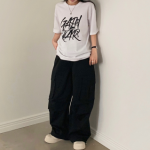 • Контрастные широкие карго-брюки со шнурком и вставками