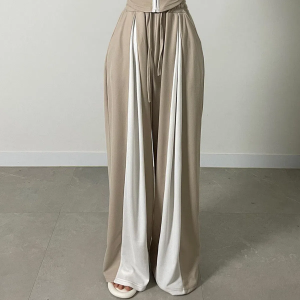 Широкие трикотажные брюки с контрастными вставками и защипами
