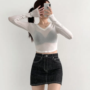 Крой прямая мини-юбка с эффектом необработанного края