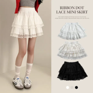 • Мини-юбка с бантом, гороховым принтом и кружевными фестонами