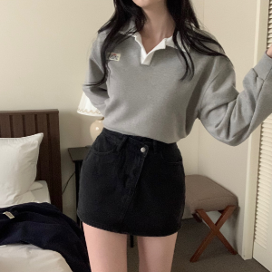 • Асимметричная джинсовая мини-юбка с косым кроем