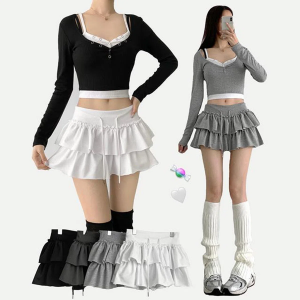• Мини-юбка с ярусами, расклешённым силуэтом и встроенными шортами