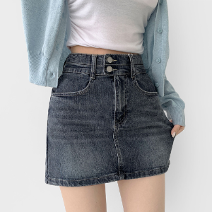 • Джинсовая мини-юбка с завышенной посадкой и корректирующими вставками