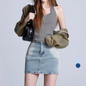 Мини-юбка из винтажного денима с боковой эффектной стиркой