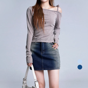 • Мини-юбка из винтажного денима с боковой эффектной стиркой