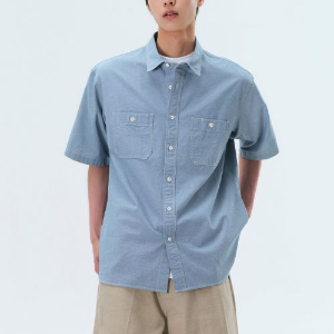 • Musinsa Standard Chambray Short Sleeve Work Shirt – Light Blue