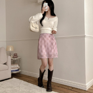 • Шифоновая клетчатая миди-юбка с бантом "Эна"
