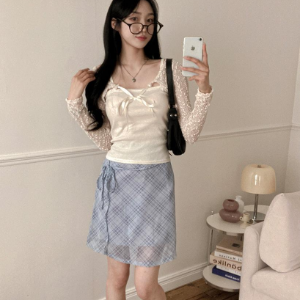 Шифоновая клетчатая миди-юбка с бантом "Эна"