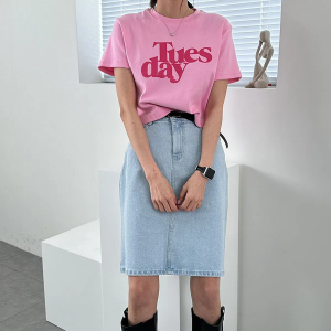 Денимовая юбка A-силуэта миди длины с высокой посадкой