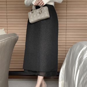 Юбка H-силуэта с цветочным жаккардом и вставками из органзы