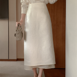 Юбка H-силуэта с цветочным жаккардом и вставками из органзы