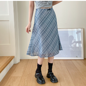 • Клетчатая миди-юбка с бантом и лёгким шифоном