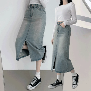 • Длинная юбка с разрезом спереди и эффектом стирки