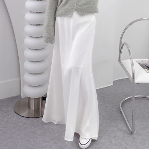 • Длинная однотонная сатиновая юбка с высокой посадкой и задней резинкой