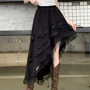 • Длинная юбка с ярусами, кружевом и асимметричным кроем на резинке