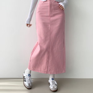 • Длинная хлопковая юбка H-силуэта с разрезом и эластичной спинкой