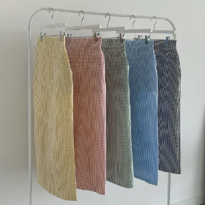 • Длинная хлопковая юбка в клетку H-силуэта с разрезом и эластичной вставкой сзади