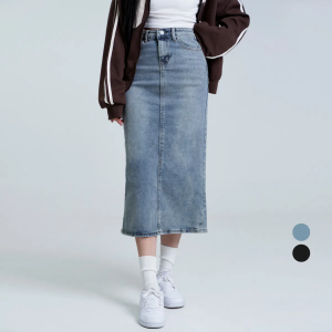 Длинная джинсовая юбка с винтажной стиркой и базовым дизайном