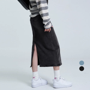 • Длинная джинсовая юбка с винтажной стиркой и базовым дизайном