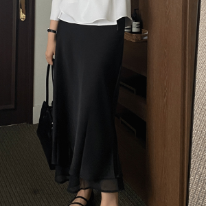 Длинная атласная юбка с полупрозрачным верхним слоем и эластичным поясом