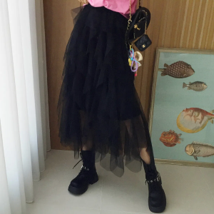 Длинная юбка с высокой талией, асимметричным кружевом и пышным силуэтом