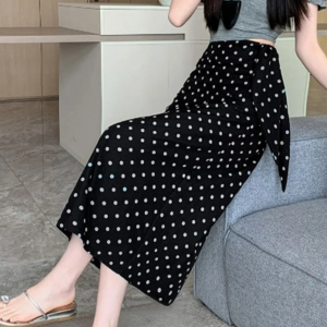 Длинная юбка в горох с бантом — весенне-летняя модель