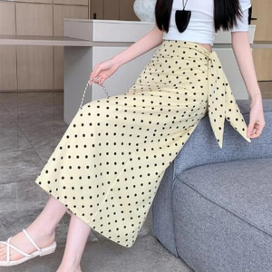 • Длинная юбка в горох с бантом — весенне-летняя модель