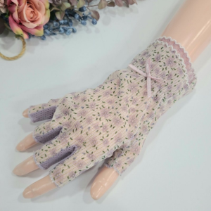 • Женские Полуперчатки с Кружевом, Мелким Цветочным Узором и Бантом — лёгкая UV-защита с ноткой романтики