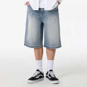 [Cooltandard] Big Brush Bermuda Denim Pants [Light Indigo]