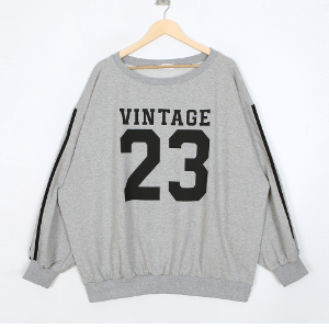 • Lettering Off-Neck Line Contrast Oversized Sweatshirt