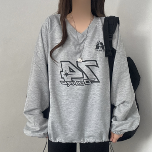 Windbreaker V-Neck String Contrast Sweatshirt