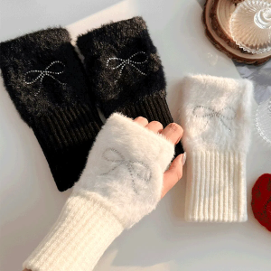 Женские Зимние Хэндвормеры с Ангорой, Мехом и Кубическим Бантом — тепло и изящество в одном аксессуаре