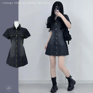 Мини-платье-рубашка из светлого денима с короткими рукавами и бантом на талии
