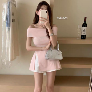 Мини-платье с открытыми плечами для летнего отдыха и торжеств