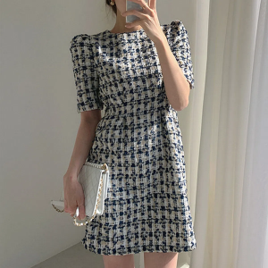 Твидовое мини-платье с короткими рукавами в стиле soft classic