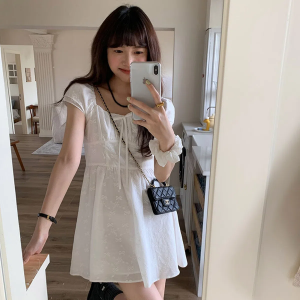 Мини-платье с вышивкой и бантом в айлет-стиле
