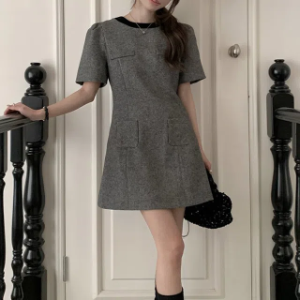 Мини-платье с бантом и короткими рукавами в классическом стиле