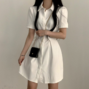 Мини-платье-рубашка с короткими рукавами и задней резинкой