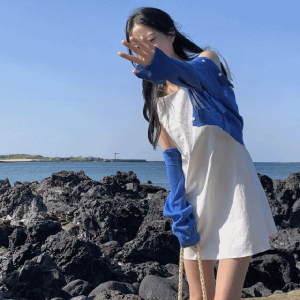 • Льняное мини-платье-комбинация с бретелями и бантом