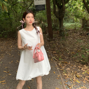 • Мини-платье без рукавов с силуэтом baby doll и объёмной юбкой