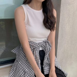 8 seconds Ribbon Shoulder Sleeveless T-shirt – Brown