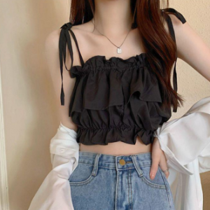 Дизайн тонкие регулируемые бретели, сборка на лифе и волан по низу