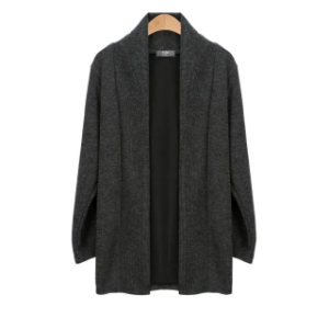Open Shawl-Collar Stretch Knit Half-Long Cardigan
