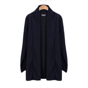 • Open Shawl-Collar Stretch Knit Half-Long Cardigan