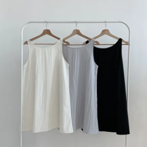 • Лёгкое однотонное мини-платье без рукавов из нейлона